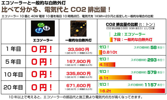 ●昼間の太陽光エネルギーを蓄電し、夜間自動点灯するLED照明。