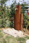 自然色豊かな庭先にマッチする、オリジナルデザインの木製立水栓です。