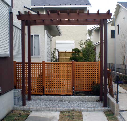 パーゴラ・フェンス・ウッドデッキを融合させた癒しの空間創作作品です