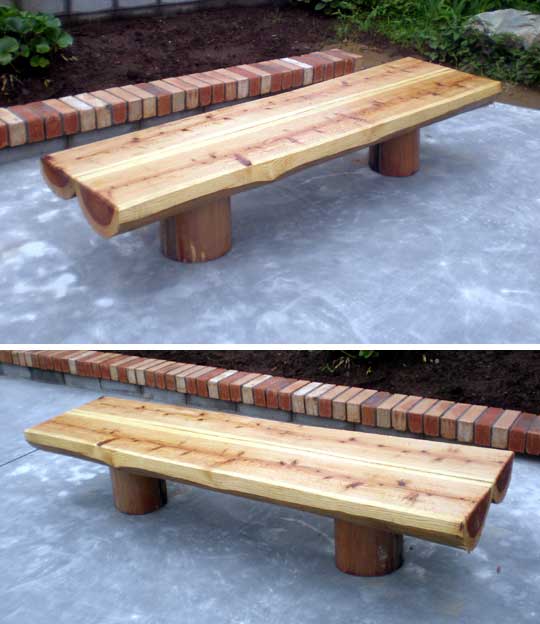 ■施主様のご要望で丸太(施主様の敷地内で伐採されたもの)を加工してベンチを作成させていただきました。